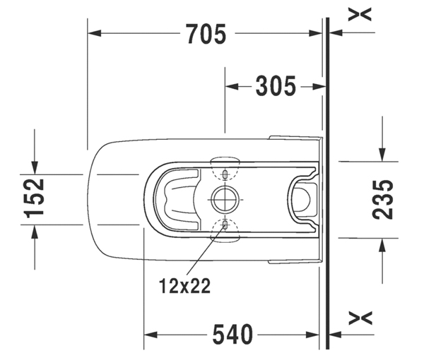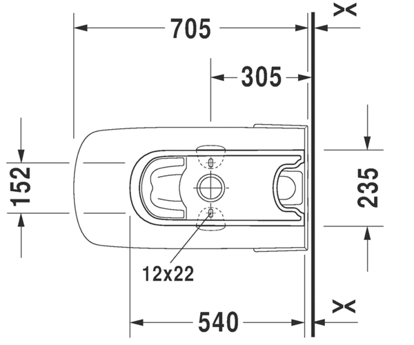 (无水箱), 美式座便器, 加长型带虹吸喷头, 305 mm/12" 坑距, 垂直出水