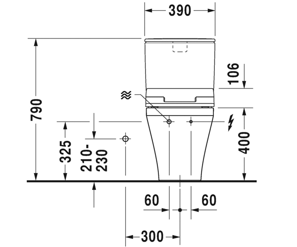 型号 216051(无水箱), 美式座便器, 加长型带虹吸喷头, 仅能够与SensoWash®搭配使用, 305 mm/12" 坑距, 连接组件适用于带隐藏式连接件的 SensoWash®, 垂直出水