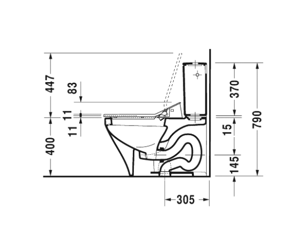 (无水箱), 美式座便器, 加长型带虹吸喷头, 仅能够与SensoWash®搭配使用, 305 mm/12" 坑距, 连接组件适用于带隐藏式连接件的 SensoWash®, 垂直出水