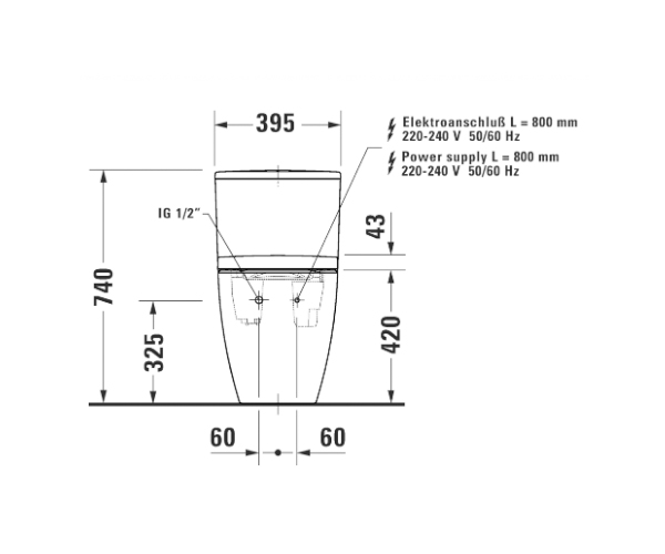 型号 219001 无缝冲水, 美式座便器, 加长型带虹吸喷头, 305 mm/12" 坑距, 仅适用于与SensoWash®f 搭配, 垂直出水