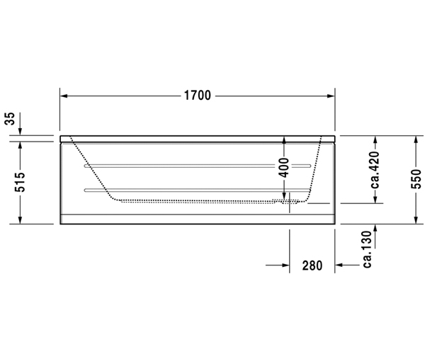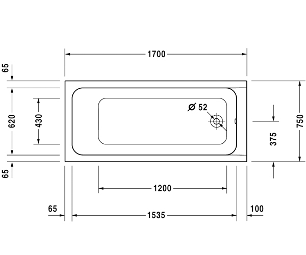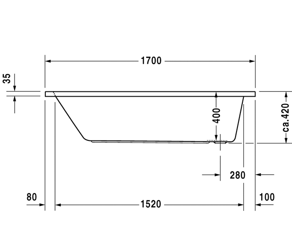 1700 x 700 mm矩型, 嵌入式, 带一个倾斜靠背, 出水口位于脚部, ´卫浴亚克力