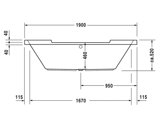 1700 x 750 mm矩型, 带一个倾斜靠背, 出水口位于脚部, ´卫浴亚克力