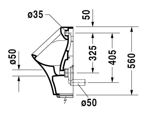 型号 280431 电子感应小便器适用于电池供电, 隐蔽式进水, 虹吸式, 水平出水, 包含整套控制件及配件 Matteo Thun & Antonio Rodriguez 设计 尺寸 300 x 340 mm 可变形式 无防溅图标 2804310000 带防溅图标 2804310007
