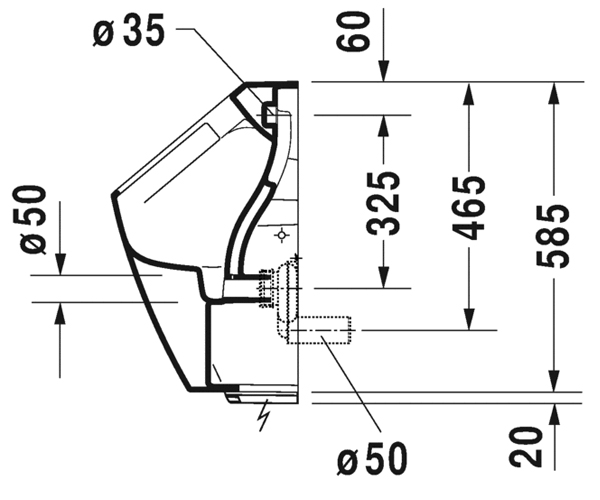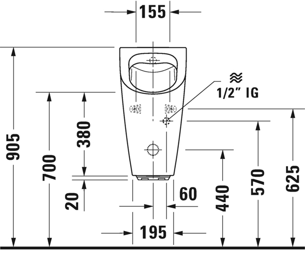 电子感应小便器适用于电池供电, 无缝冲水, 隐蔽式进水, 虹吸式, 水平出水, 包含整套控制件及配件