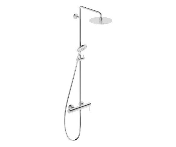 陶瓷混合系统, 连接件尺寸 DN15, 软管连接件 DN15, 流率 12,8 升/分钟 (3 bar), 花洒喷头角度可调调节, 高度可调节的手持花洒柄, 连接软管内有止回阀, 伸出长度350mm, 包括:包括淋浴软管1600mm,,手持花洒air Ø 120 mm,淋喷头 Ø 240 mm, 推荐在压力 3-5 bar下进行操作, 1200 mm