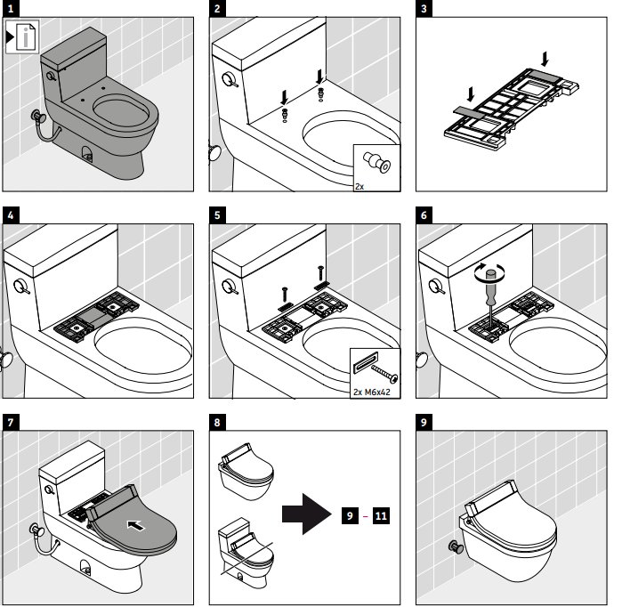 包括遥控器, 操控式盖板与座圈, 臀部冲洗、女士冲洗和舒适冲洗, 可个性化调节水温、暖风温度、座圈温度、喷头位置和喷水强度, 可自洁喷管, 2 个可调节的个性化用户设置, 夜灯, 一键式轻松安装与拆卸, 开 / 关