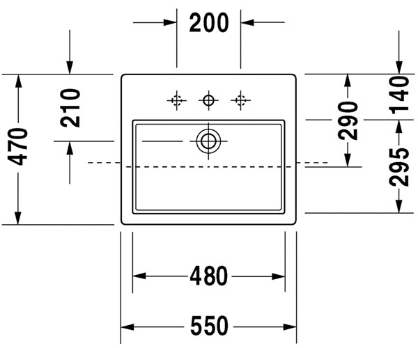 Vero 嵌入式脸盆 0315550000/30台上式脸盆, 有溢水口, 有安装龙头台, 550 mm...
