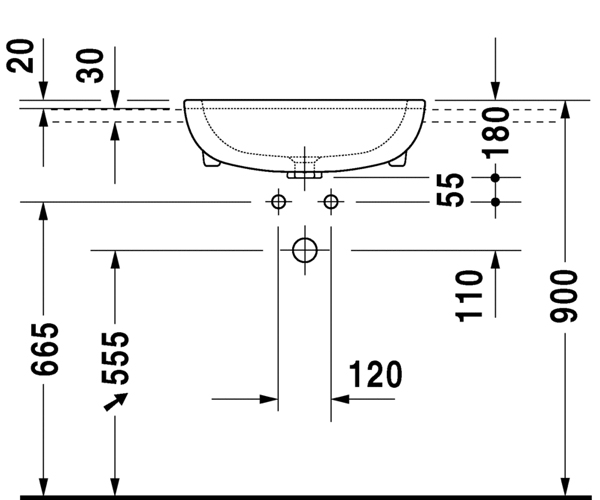 Vero 嵌入式脸盆 0315550000/30台上式脸盆, 有溢水口, 有安装龙头台, 550 mm...