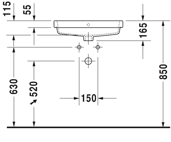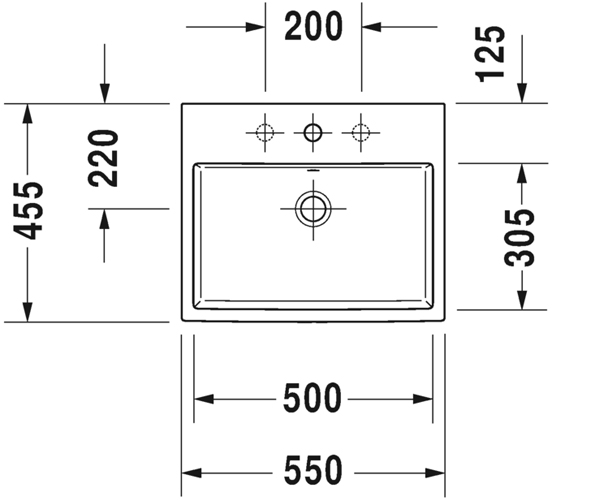 台上式脸盆, 有溢水口, 有安装龙头台, 550 mm